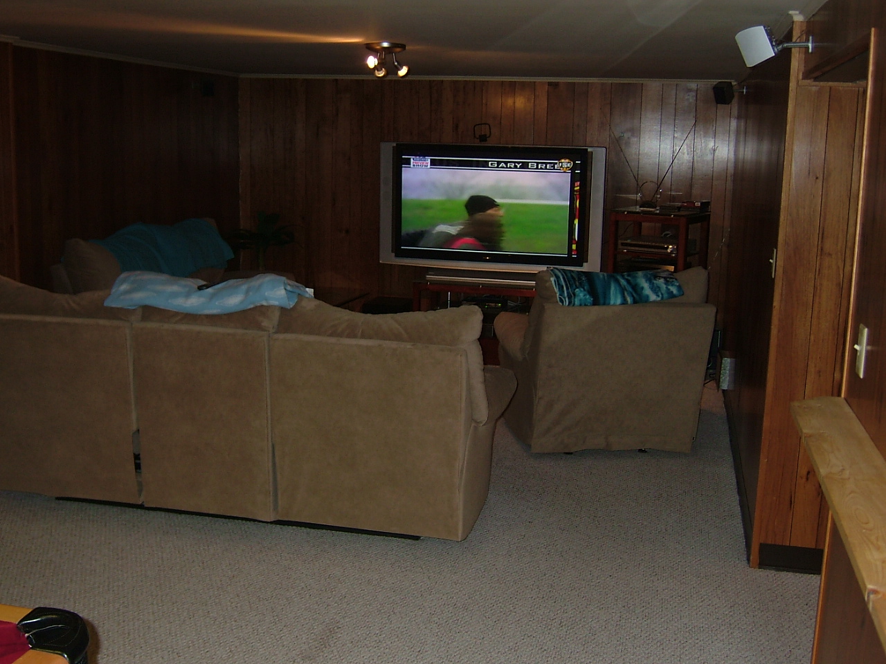 dart board, 2 sofas and a